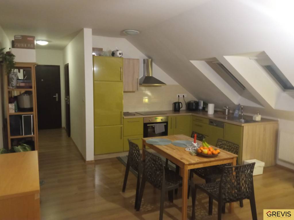 Byt je plne vybavený, s kuchynskou linkou, vrátane umývačky riadu, sporáka, rúry aj chladničky.