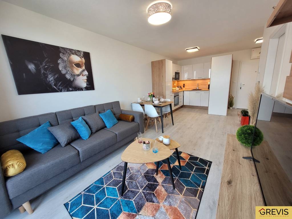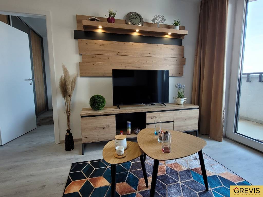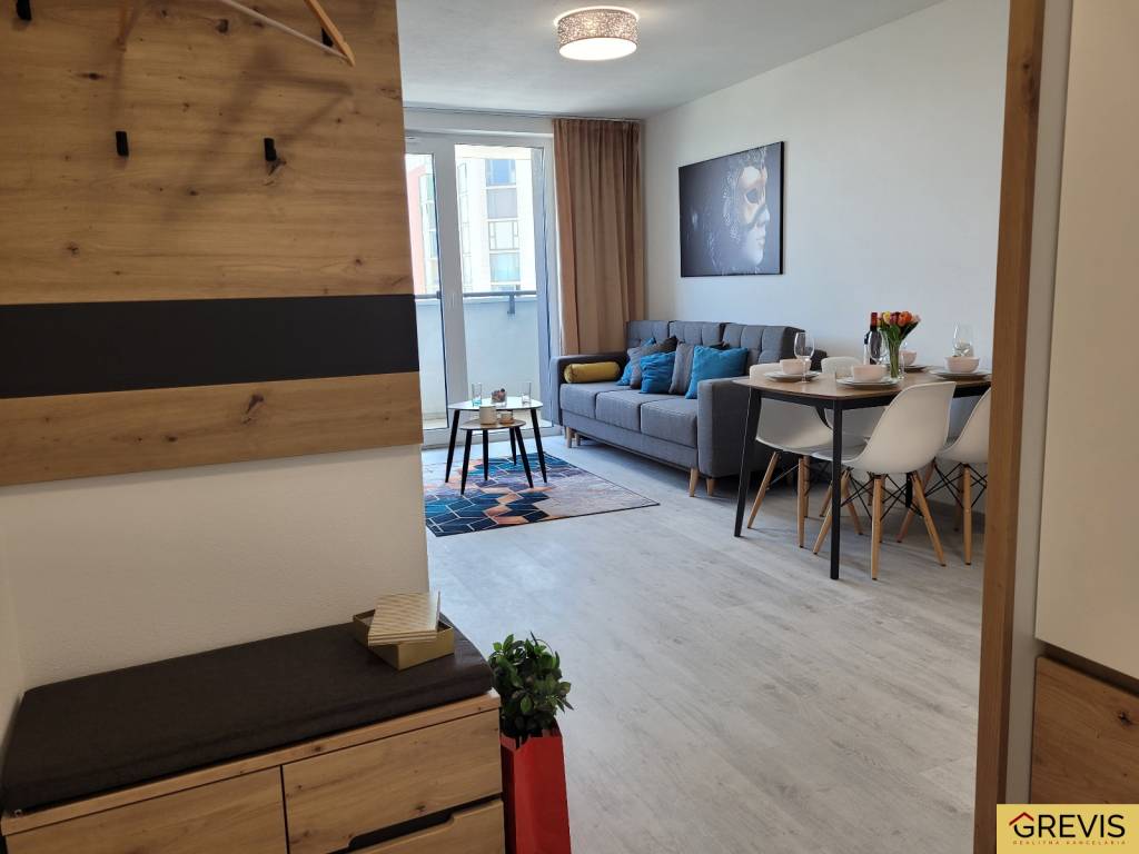 Dispozícia: Vstupná chodba so šatníkom, obývacia izba prepojená s kuchyňou, samostatná spálňa s veľkým úložným priestorom, kúpeľňa so sprchovým kútom.