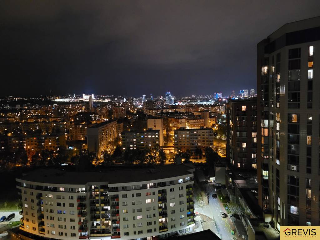 Výhľad, ktorý neomrzí: Balkón tiahnuci sa pozdĺž celého bytu je ideálnym miestom na letné večery nad osvetleným mestom.